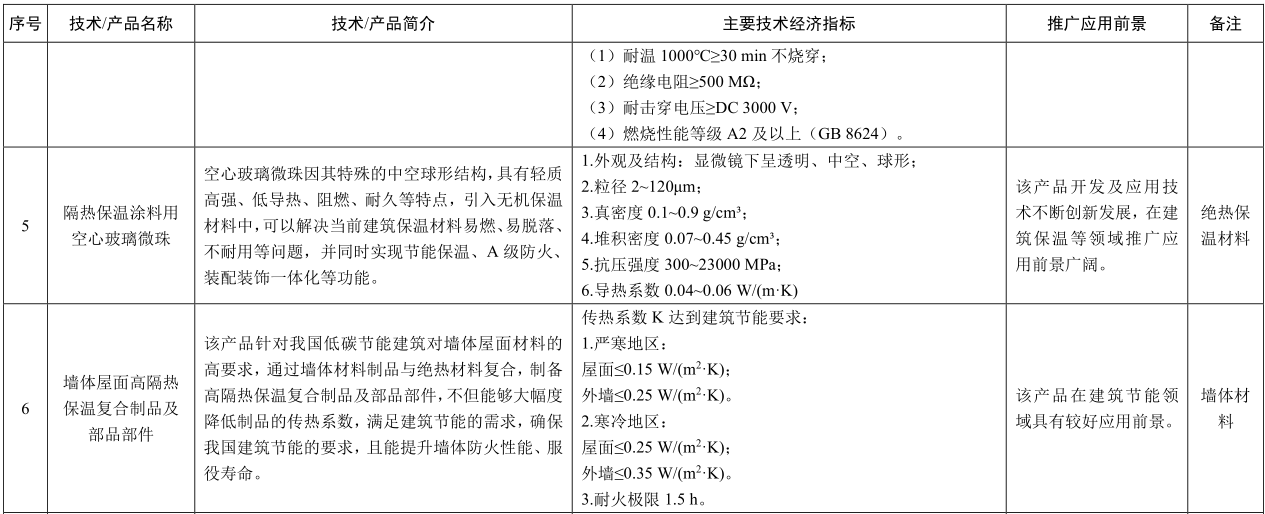 近日,工业和信息化部发布《建材工业鼓励推广应用的技术和产品目录(2025年本)》。其中,基材增强型二氧化硅气凝胶复合绝热制品、真空绝热板、现浇聚氨酯发泡颗粒复合材料外墙外保温技术、锂电池用高性能隔热材料、隔热保温涂料用空心玻璃微珠等绝热节能材料相关技术列入其中。如下: